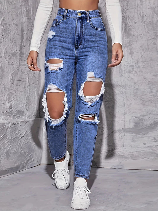 Jeans Women Spring Fashion Casual Vintage Ankle-length Ripped Trousers