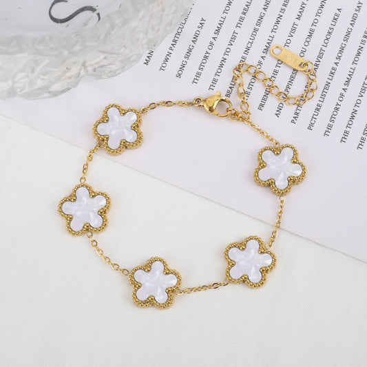 18K Gold Luxury High Quality Diamond Stainless Steel Chain Plant Flower Pendant Necklace Earrings Ring Bracelet Set