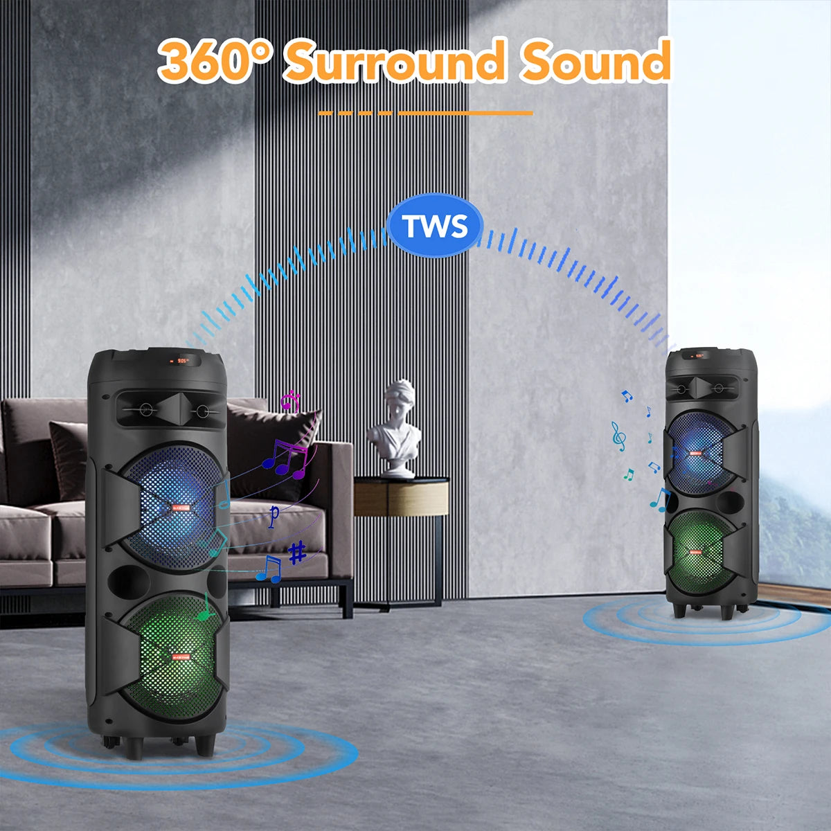 - Dual Woofers for Powerful Sound: Equipped with dual woofers, this speaker delivers deep, resonant bass and enhanced sound quality, making it perfect for music lovers who crave heavy beats and clear vocals.