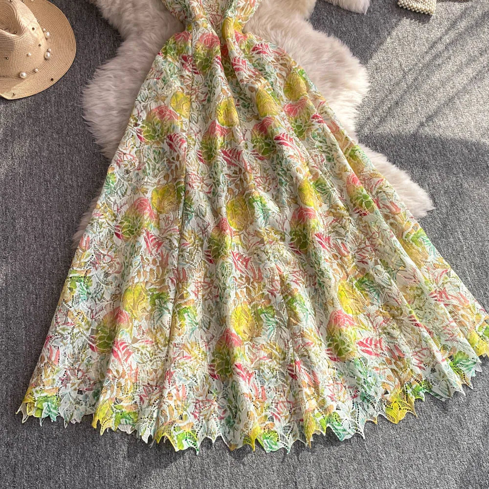 Elegant Lace Casual Sleeveless Chic Hollow Out Print Sexy Straps Dresses