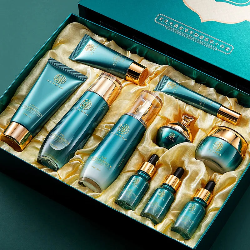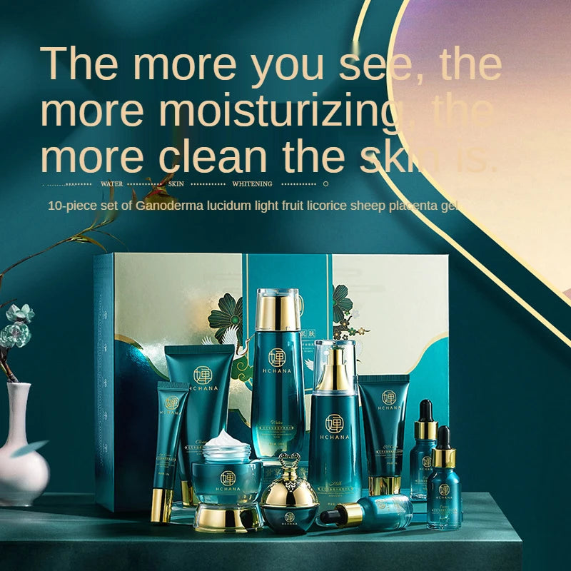 Ganoderma Lucidum Skin Care Set 10PCS Face Toner Eye Essence Cream Sheep Placenta Anti-Aging Serum Facial Cleanser Kit For Women